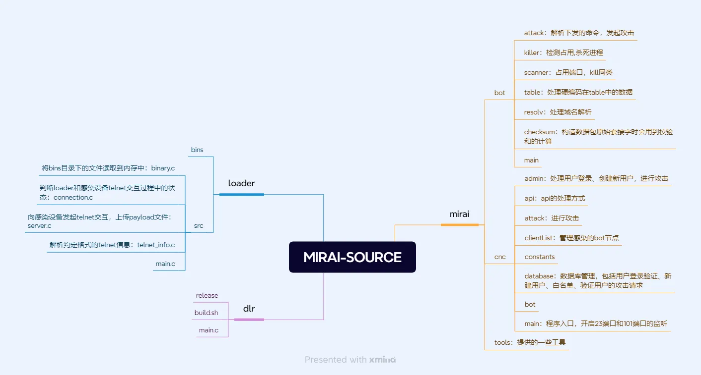 Mirai的源码分为三部分